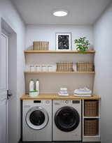 More comfort. More safety. More possibilities! The Abia 2 panel puts an end to compromises and brings a functional lighting solution to any room. The integrated dimmer-controlled motion sensor can be activated or deactivated using a dip switch before installation. This makes the panels the ideal solution for different requirements in functional rooms, kitchens or corridors. The sensor reacts reliably to movement and ensures greater comfort and safety thanks to automatic light control. When the sensor is activated, the light only switches on when it is needed, enabling energy-efficient use. When the sensor is deactivated, the panels can be conveniently switched on and off as usual using the existing wall switch. The White Select dip switch, which can be used to set the light color before installation, also offers maximum flexibility. You can choose between two warm white tones and a neutral white tone as required. The 300 mm diameter panel is easy to install and blends seamlessly into any living, functional or working environment with its timeless design in white.