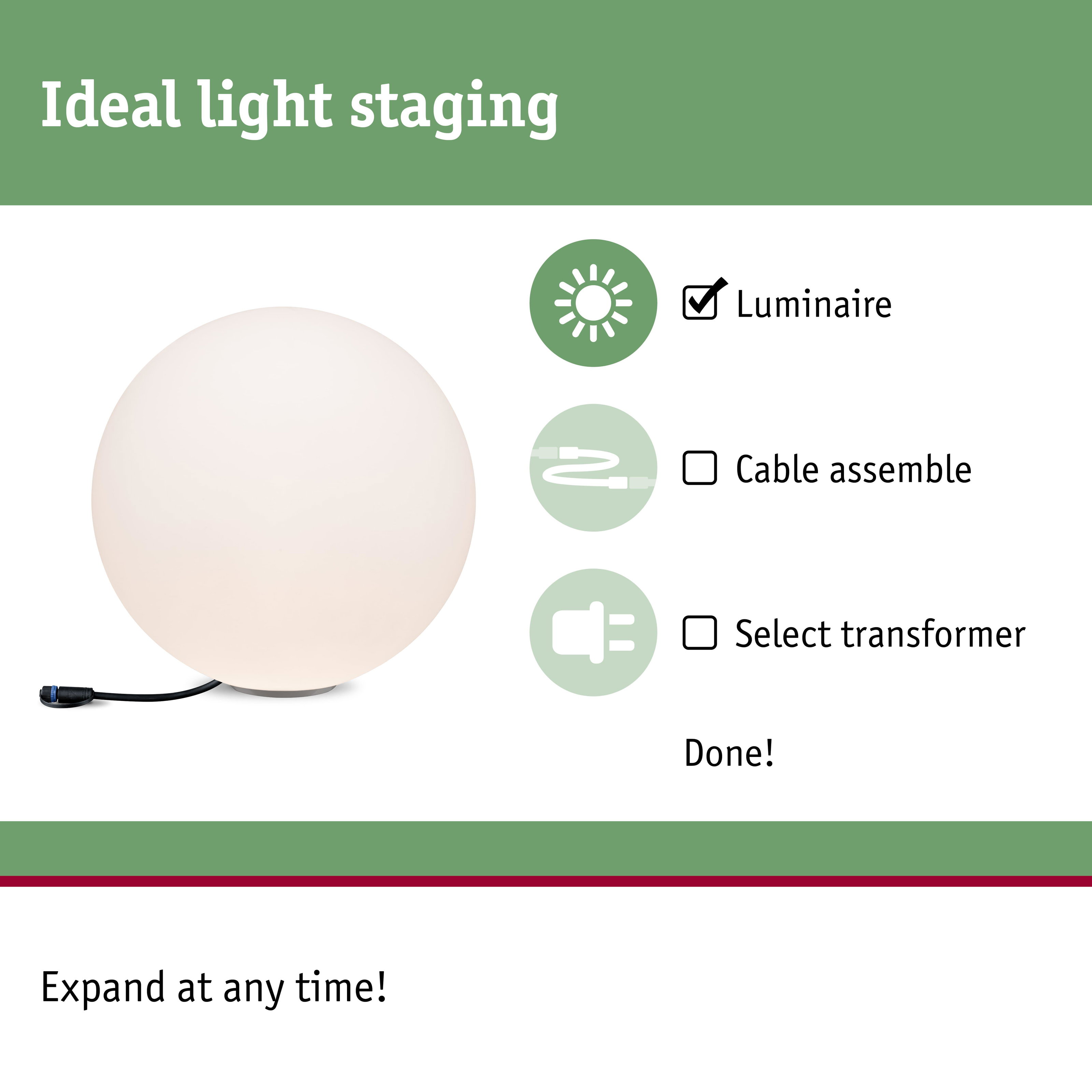 Plug & Shine LED Light object Globe IP67 3000K 6,5W White
