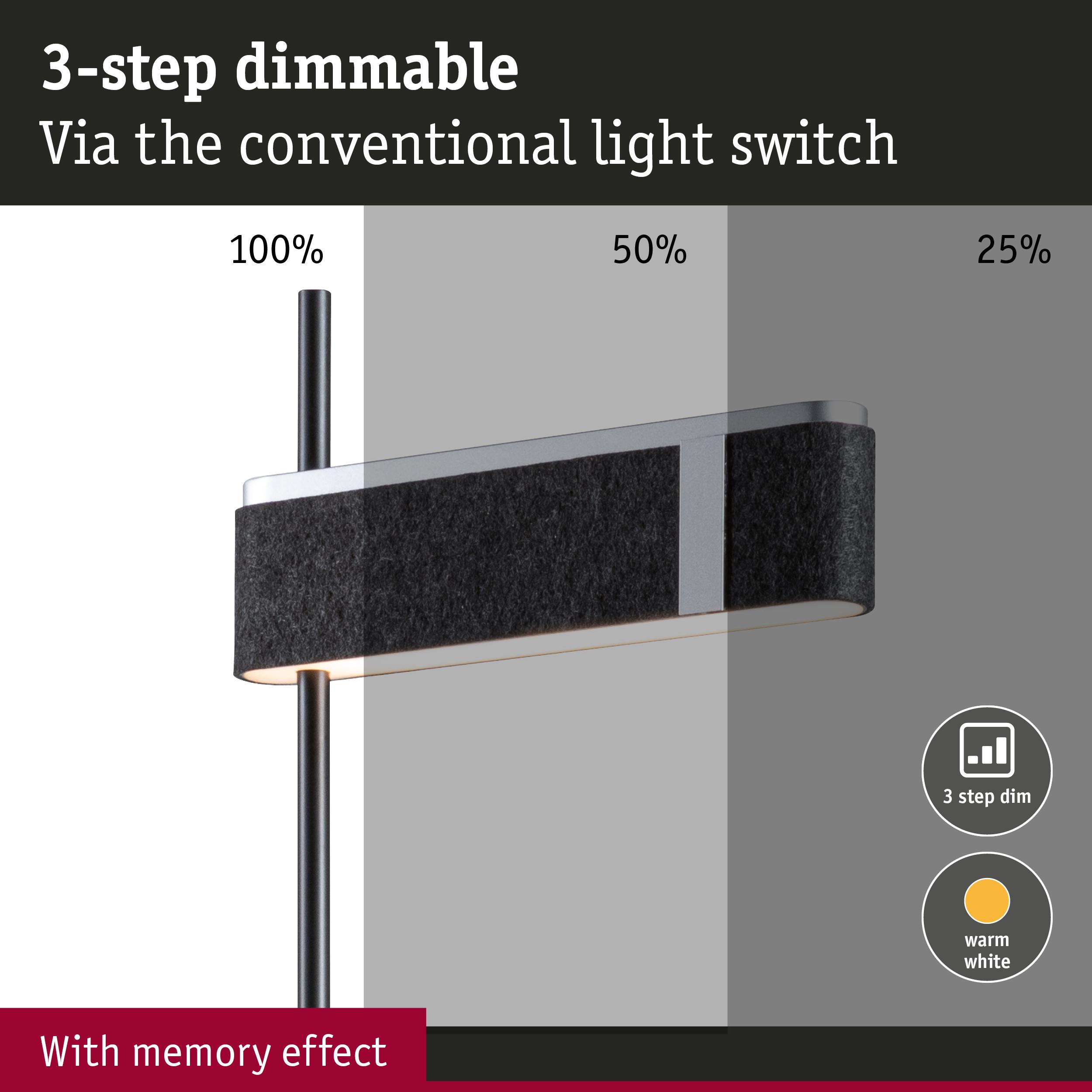 | Dim | Dimmable in 3 steps with normal light switch |