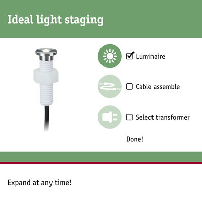 - Plug & Shine extension set consisting of 5 luminaires and connecting cable