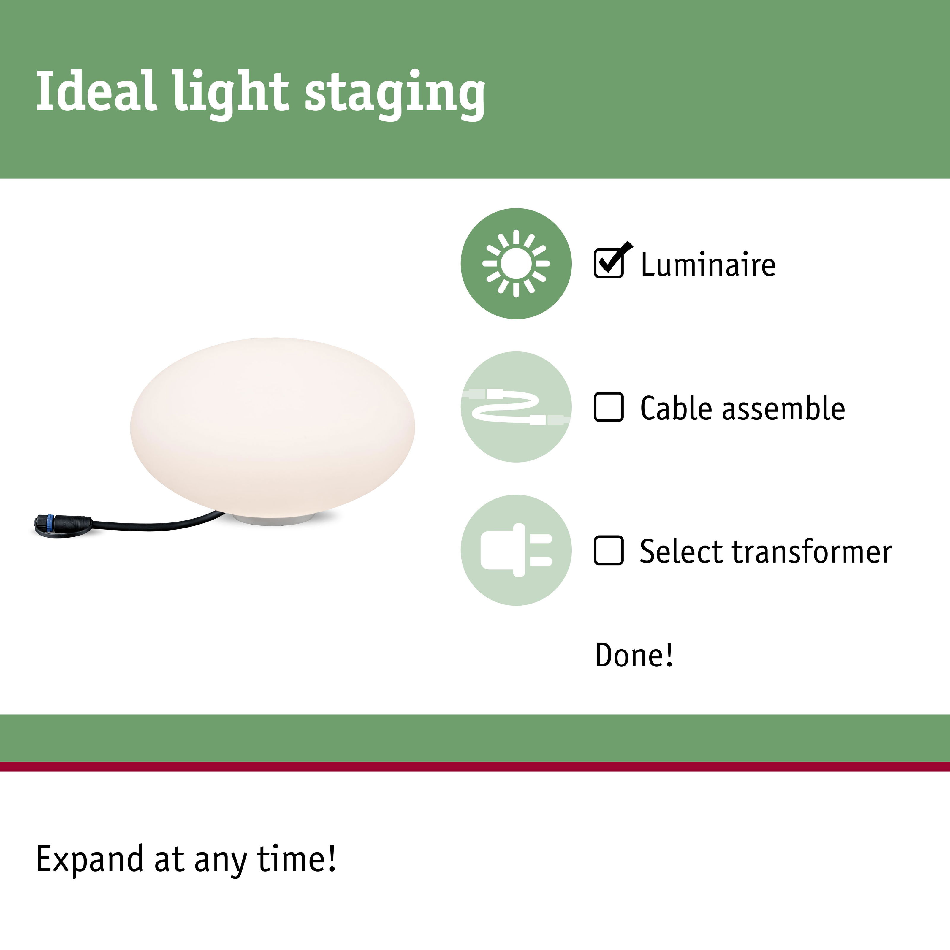 - Can be switched and dimmed via the plug & shine controller (Accessories) using the remote control.