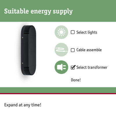 The Plug & Shine cover provides an inconspicuous and modern covering for 24 V transformers placed outdoors. It is highly weather-resistant, making it extremely durable. Please note that the cover is not suitable for plug-in transformers.