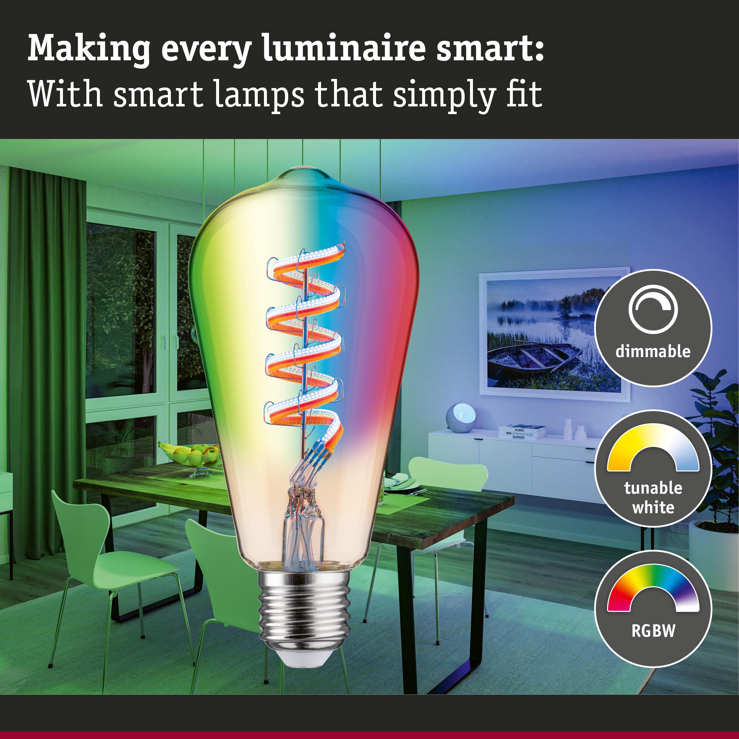 230 V Filament Smart Home Zigbee 3.0 LED Corn ST64 E27 470lm 6,3W RGBW+ dimmable Gold
