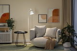 The Juna luminaire series is presented in a timeless, yet modern design language, which makes them a perfect choice for various interior styles, while creating attractive light accents in any living space. The matching table, floor and pendant luminaires in this series offer many combination options. The floor luminaire in white matt with gorgeous champagne gold accents is so versatile that it can be used as an additional light source next to the bed, in your comfy reading nook, or next to the sofa in your living space. The premium finish of this luminaire ensures an attractive look and a long service life. The flexible luminaire head allows the user to adjust the directionality of the light, while the colour-matched fabric cable further enhances its convenient and safe usage. A decorative crown mirror lamp with E14 base would be our recommendation for this luminaire to ensure glare-free light.