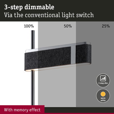 | Dim | Dimmable in 3 steps with normal light switch |