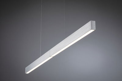 The adjustable Aptare LED pendant luminaire in Brushed aluminium is perfect for illuminating extendable tables. This makes it particularly suitable as an elegant lighting solution in the living room or dining room. It can be easily adjusted to the length of the table as required without tools. It can be adjusted in height from 90 cm to 150 cm and extended from 132 cm to 180 cm. Thanks to the two-way light emission, the pendant luminaire provides pleasant ambient light upwards and perfect illumination of the table area downwards. It also impresses with a high light output of 2240lm. Create customised lighting atmospheres with the infinitely adjustable colour-change function: from daylight white light for working, to warm white lighting for relaxation, to coloured lighting effects for an atmospheric ambience. The memory function saves the last selected setting until the next time it is switched on. Thanks to the integrated Zigbee 3.0 interface, the brightness and light colour can be conveniently controlled smartly via app, voice command or remote control.