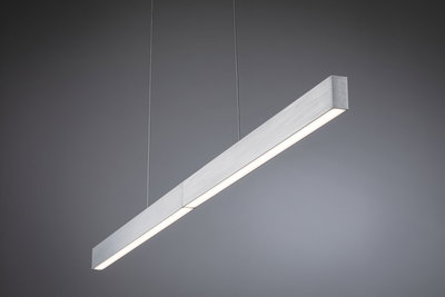 The adjustable Aptare LED pendant luminaire in Brushed aluminium is perfect for illuminating extendable tables. This makes it particularly suitable as an elegant lighting solution in the living room or dining room. It can be easily adjusted to the length of the table as required without tools. It can be adjusted in height from 90 cm to 150 cm and extended from 132 cm to 180 cm. Thanks to the two-way light emission, the pendant luminaire provides pleasant ambient light upwards and perfect illumination of the table area downwards. It also impresses with a high light output of 2240lm. Create customised lighting atmospheres with the infinitely adjustable colour-change function: from daylight white light for working, to warm white lighting for relaxation, to coloured lighting effects for an atmospheric ambience. The memory function saves the last selected setting until the next time it is switched on. Thanks to the integrated Zigbee 3.0 interface, the brightness and light colour can be conveniently controlled smartly via app, voice command or remote control.