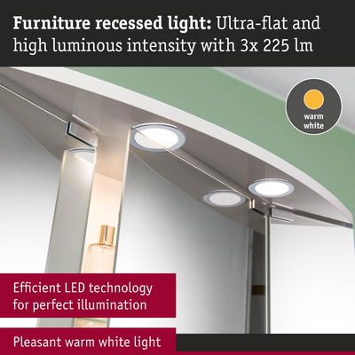LED Recessed furniture luminaire 3-piece set round 65mm 3x2,5W 3x180lm 230/12V 3000K Chrome