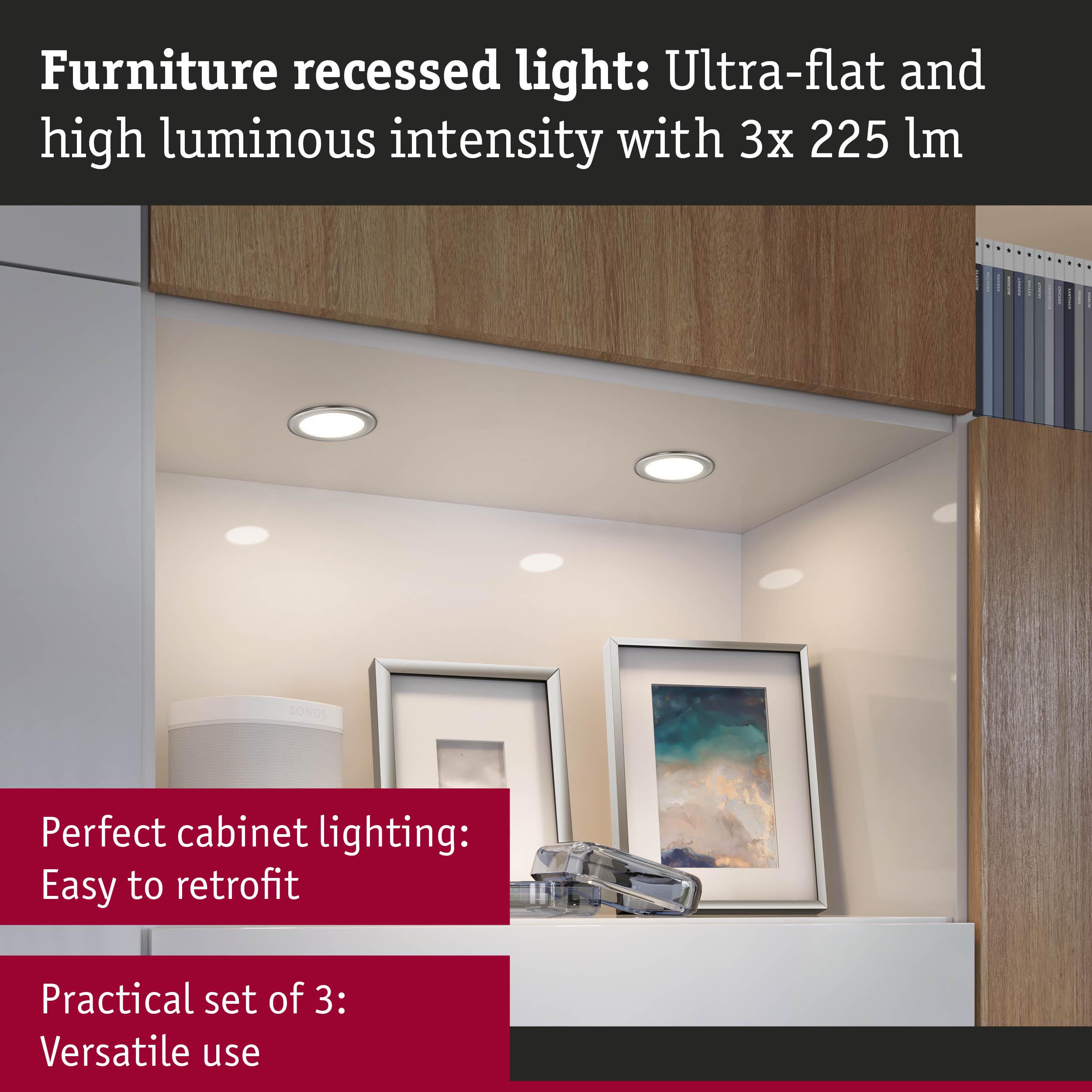 LED Recessed furniture luminaire 3-piece set round 65mm 3x2,5W 3x180lm 230/12V 4000K Brushed iron