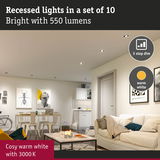 LED Recessed luminaire 3-Step-Dim 10-piece set Swivelling round 82mm 70° 10x4,8W 10x450lm 230V dimmable 3000K White