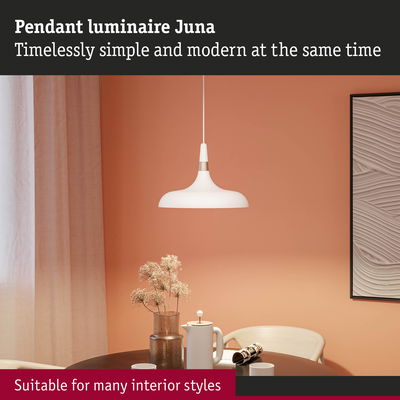 The Juna luminaire series is presented in a timeless, yet modern design language, which makes them a perfect choice for various interior styles, while creating attractive light accents in any living space. The matching table, floor and pendant luminaires in this series offer many combination options. The pendant luminaire in white matt with gorgeous champagne gold accents is so versatile that it can be used as the main light source over the dining table or above the kitchen counter. The premium finish of this luminaire ensures an attractive look and a long service life. A decorative crown mirror lamp with E27 base would be our recommendation for this luminaire to ensure glare-free light.