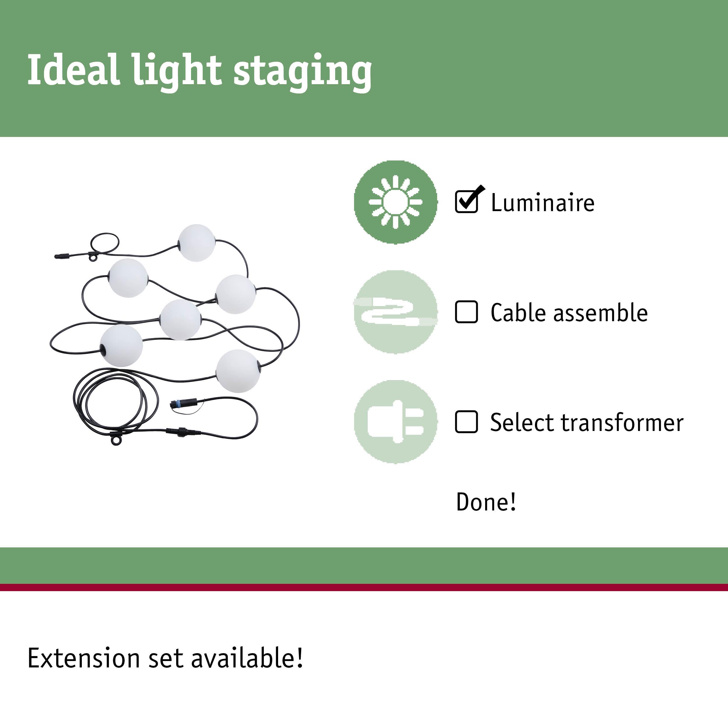 - Basic set consisting of 6 ball luminaires