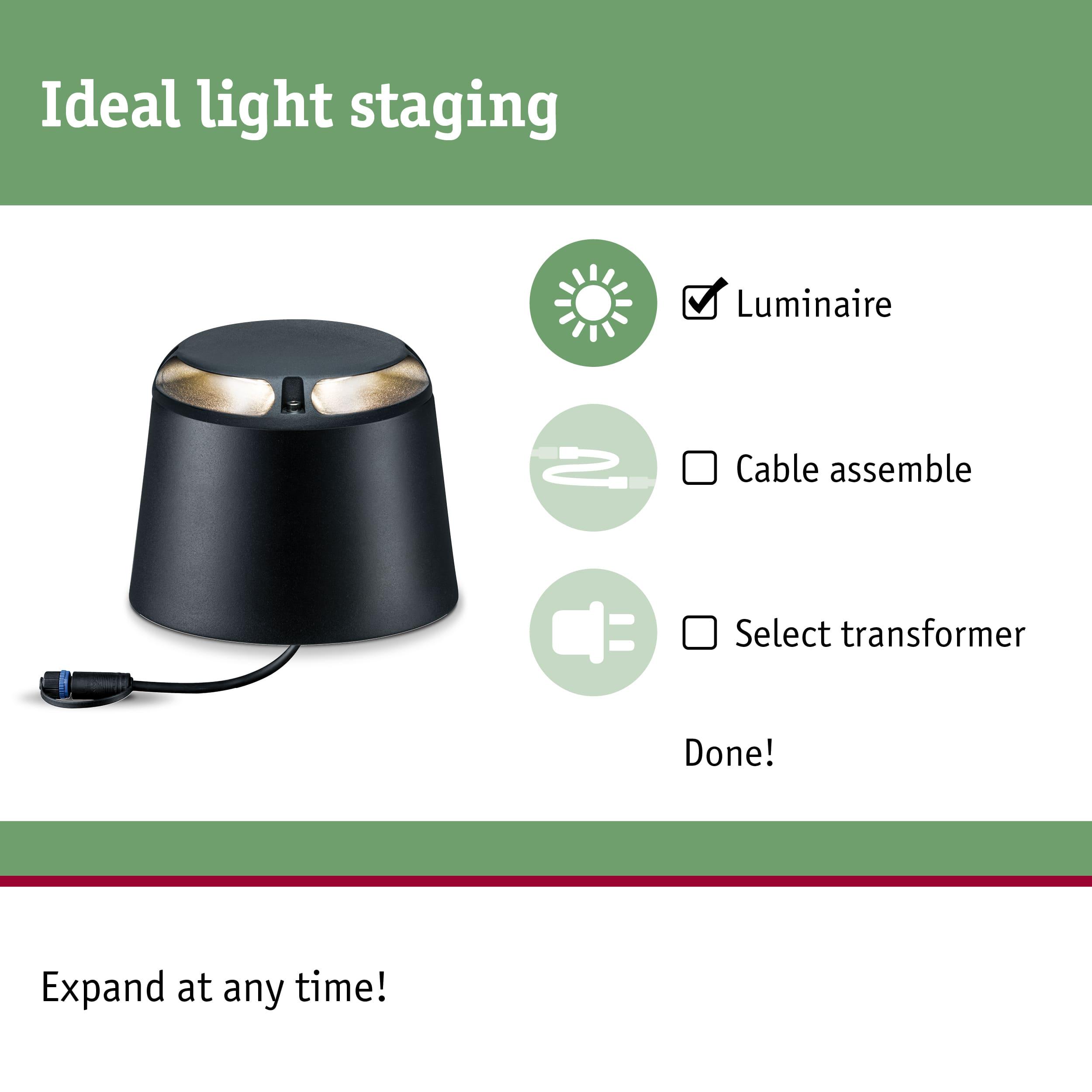 Plug & Shine LED Surface-mounted floor luminaire Warm white Individual Spot Double light emission, 180° IP67 3000K 2x3,3W Anthracite