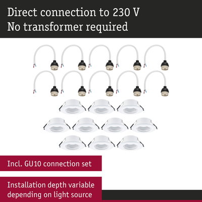 Recessed Luminaire 10-piece set Rigid round 90mm GU10 max. 10x10W 230V dimmable White