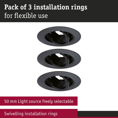 Recessed Luminaire 3-piece set Swivelling round 90mm 30° GU10 max. 3x10W 230V dimmable Black