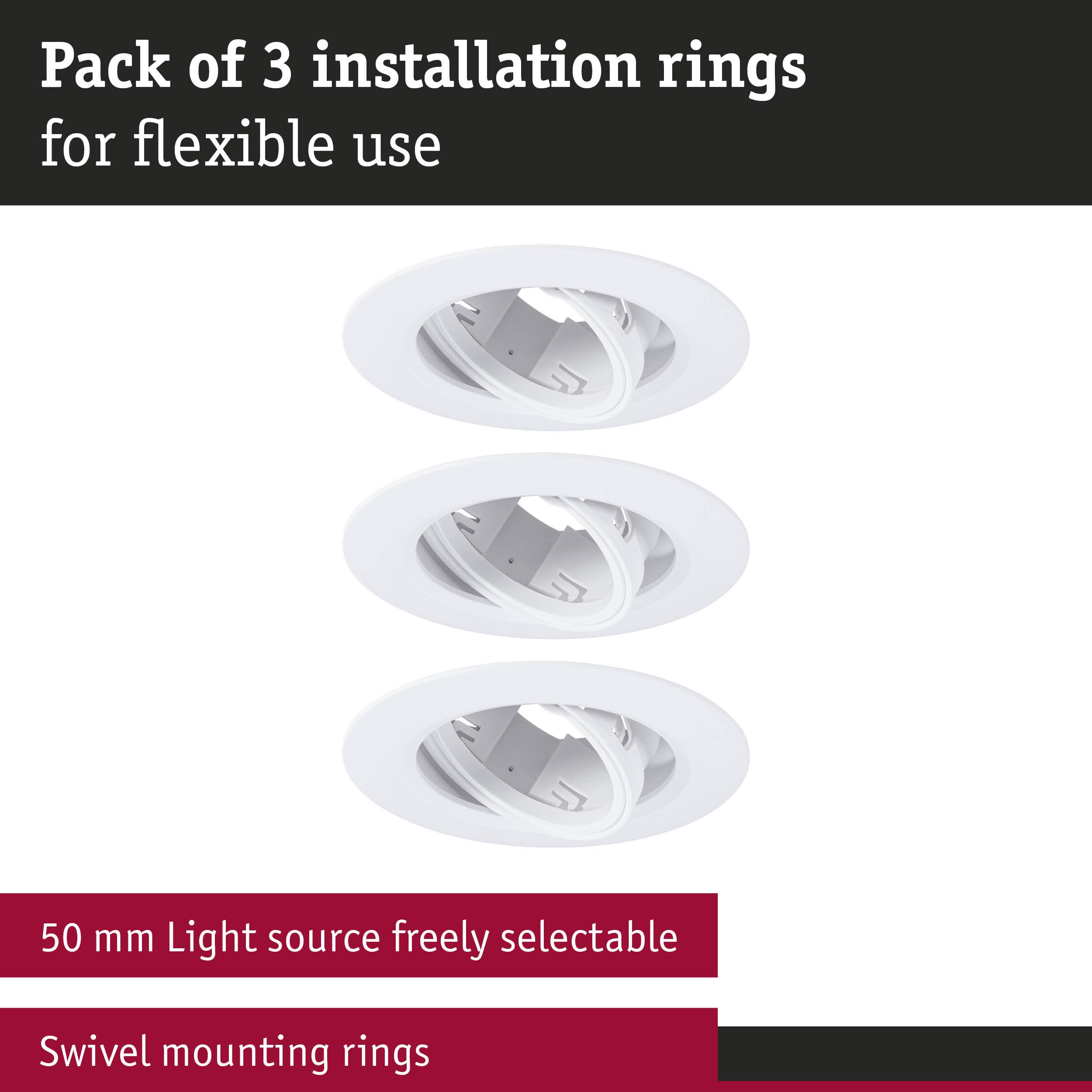 Recessed Luminaire 3-piece set Swivelling round 90mm 30° GU10 max. 3x10W 230V dimmable White