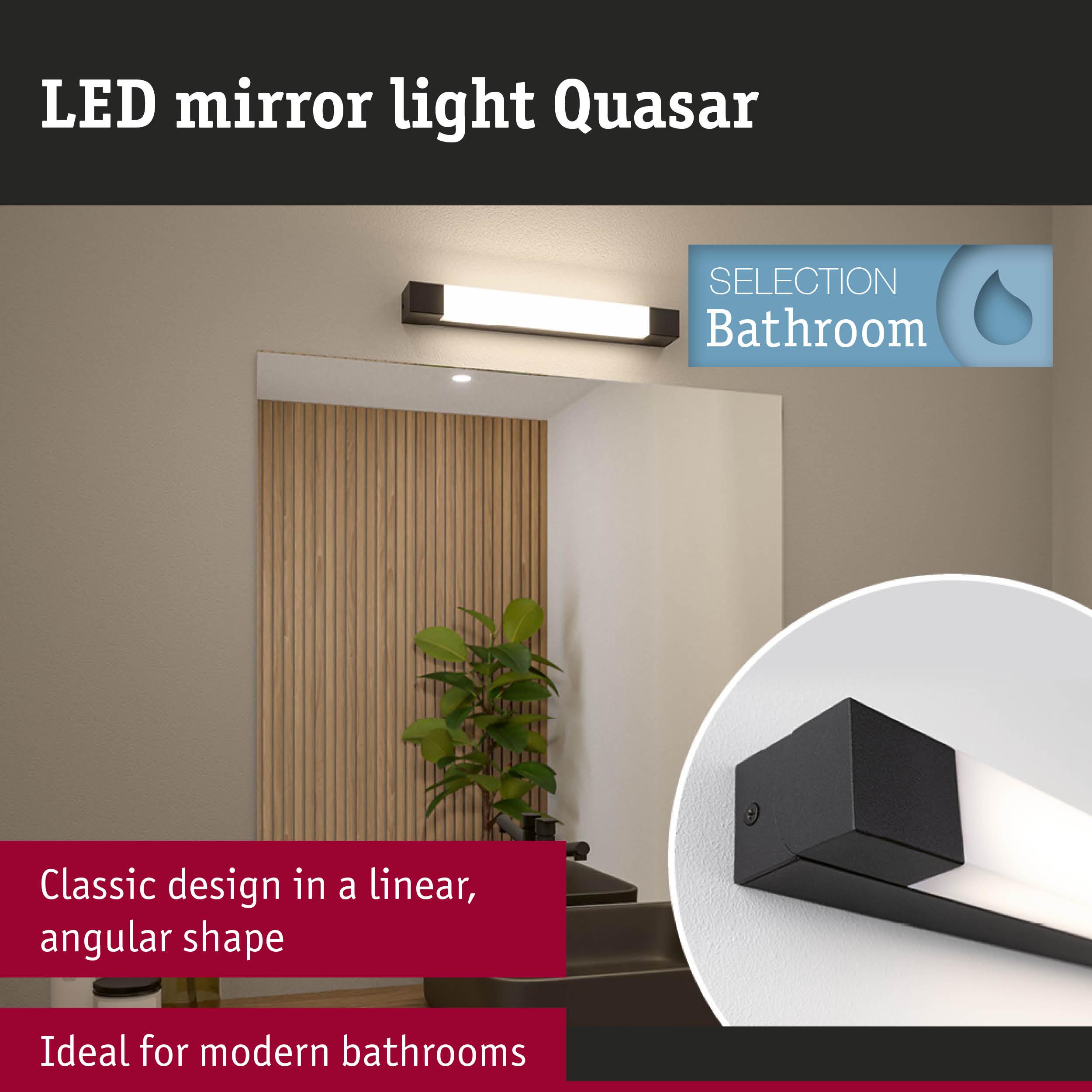Selection Bathroom LED Mirror luminaire Quasar IP44 3000K 600lm 230V 7,5W Black