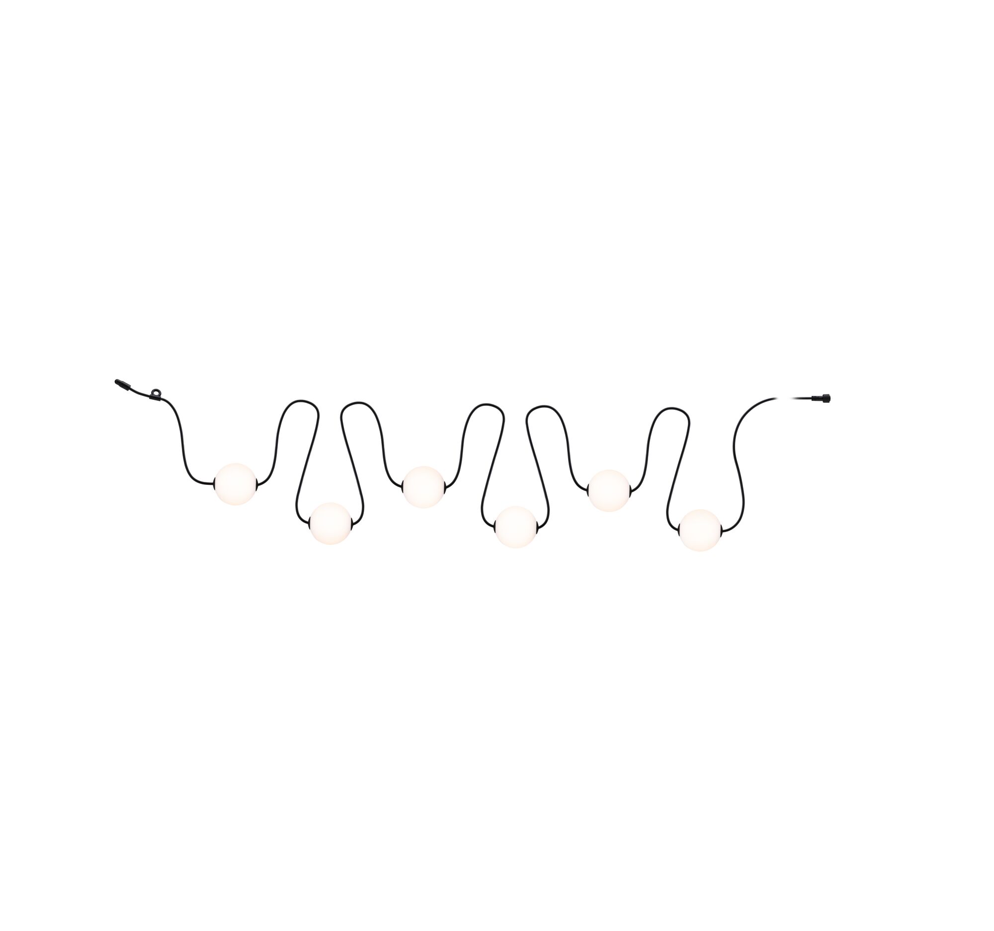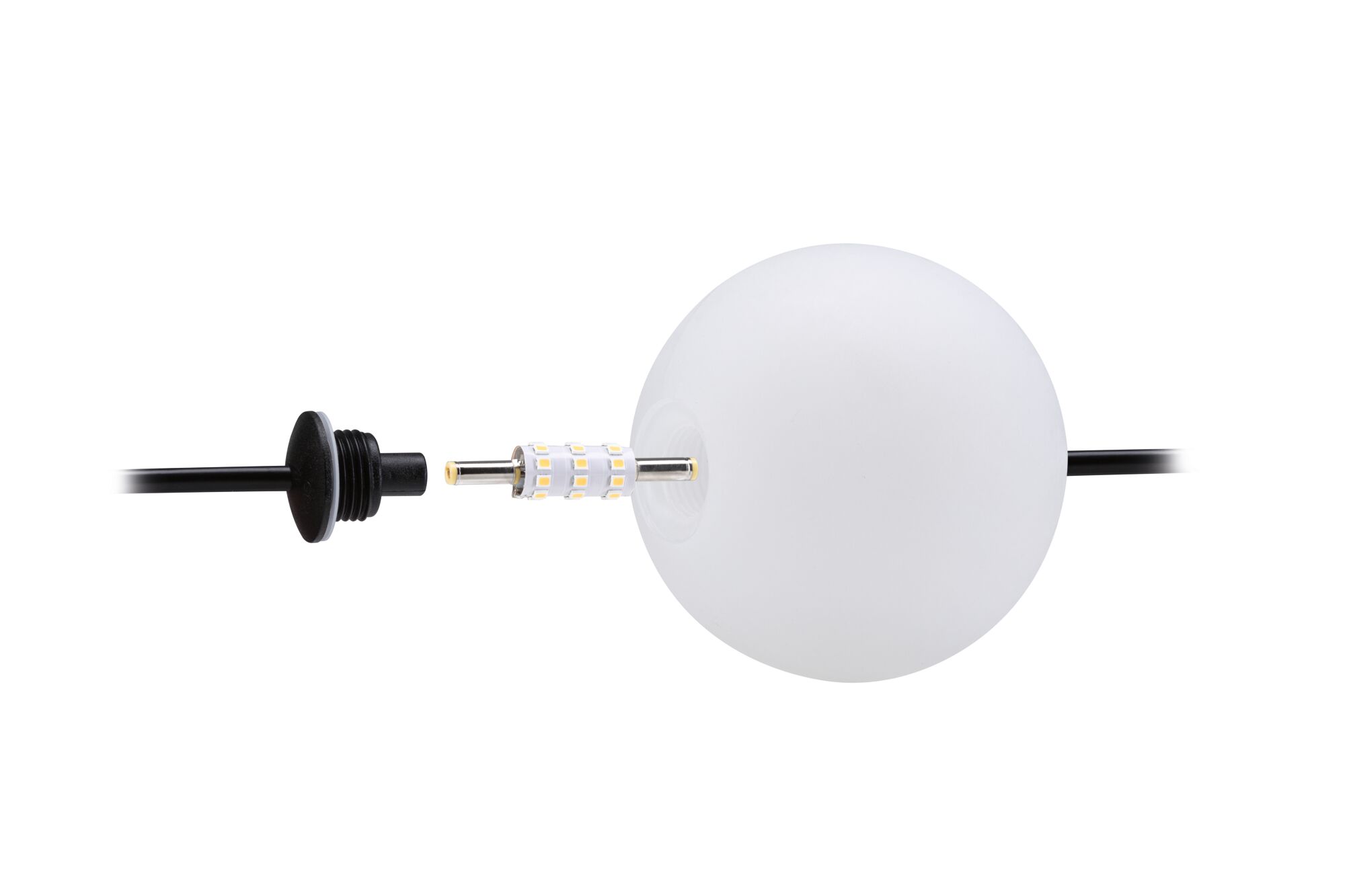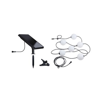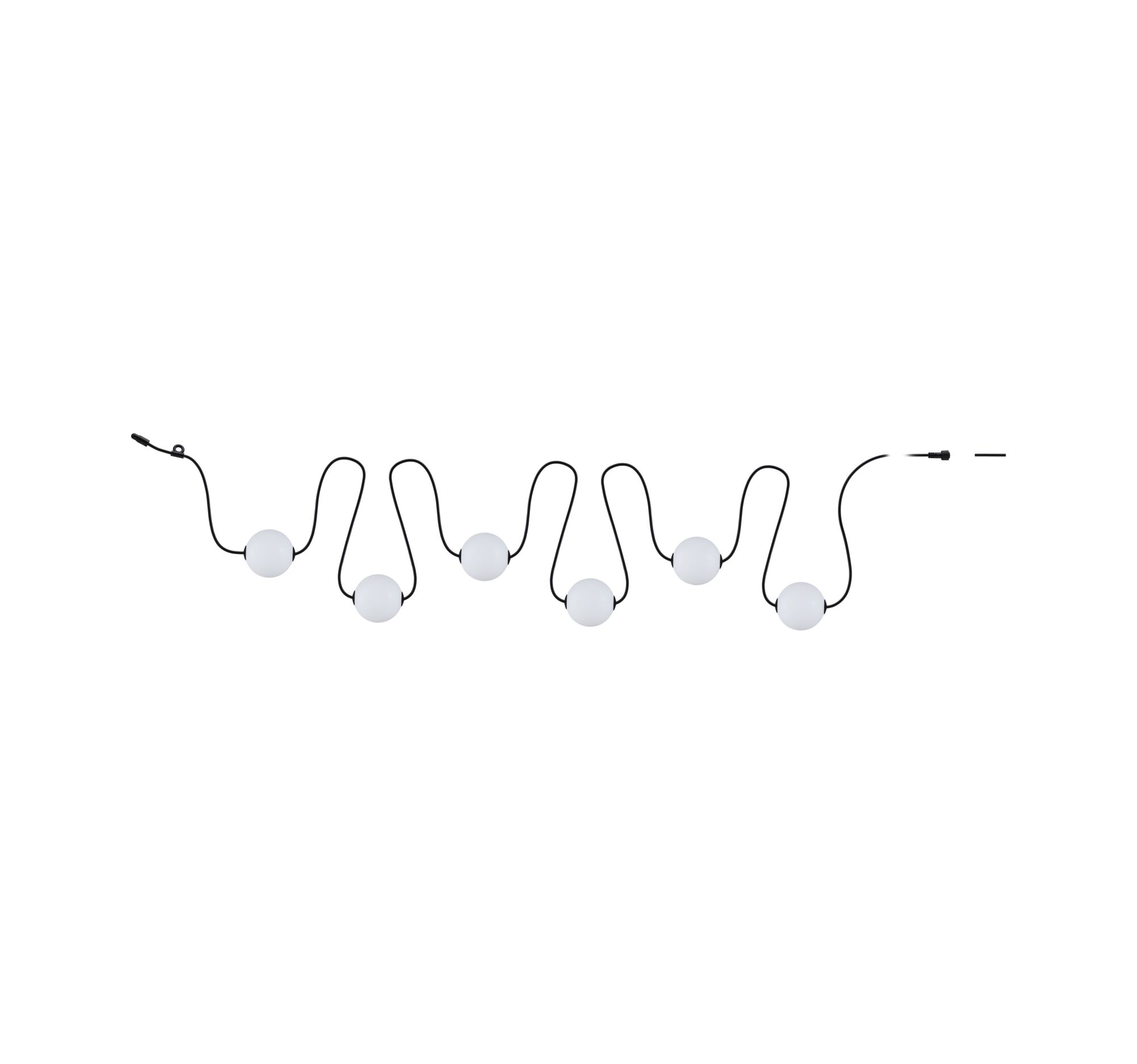 The Taina Solar fairy lights are the perfect accessory for atmospheric moments outdoors. On trees, patios or railings, they make an eye-catching feature, providing decorative light accents. The solar function makes these lights completely independent of any power source. The basic set is 5.8m long and consists of 6 ball luminaires that emit a warm white, cosy light with a colour temperature of 3000K. With the matching expansion set, the fairy lights can be extended to up to 30 ball luminaires as required, offering flexible design options. The individual illuminants for the balls are available separately and can be replaced as required. This not only saves costs, but also ensures sustainable and long-lasting usage. In addition to the fairy lights, included in delivery are a solar panel with a clamping device so that it can be easily attached to railings or fences. Suspension brackets are already integrated into the cable for easy application. Thanks to the high IP67 protection, the fairy lights are particularly robust and durable.