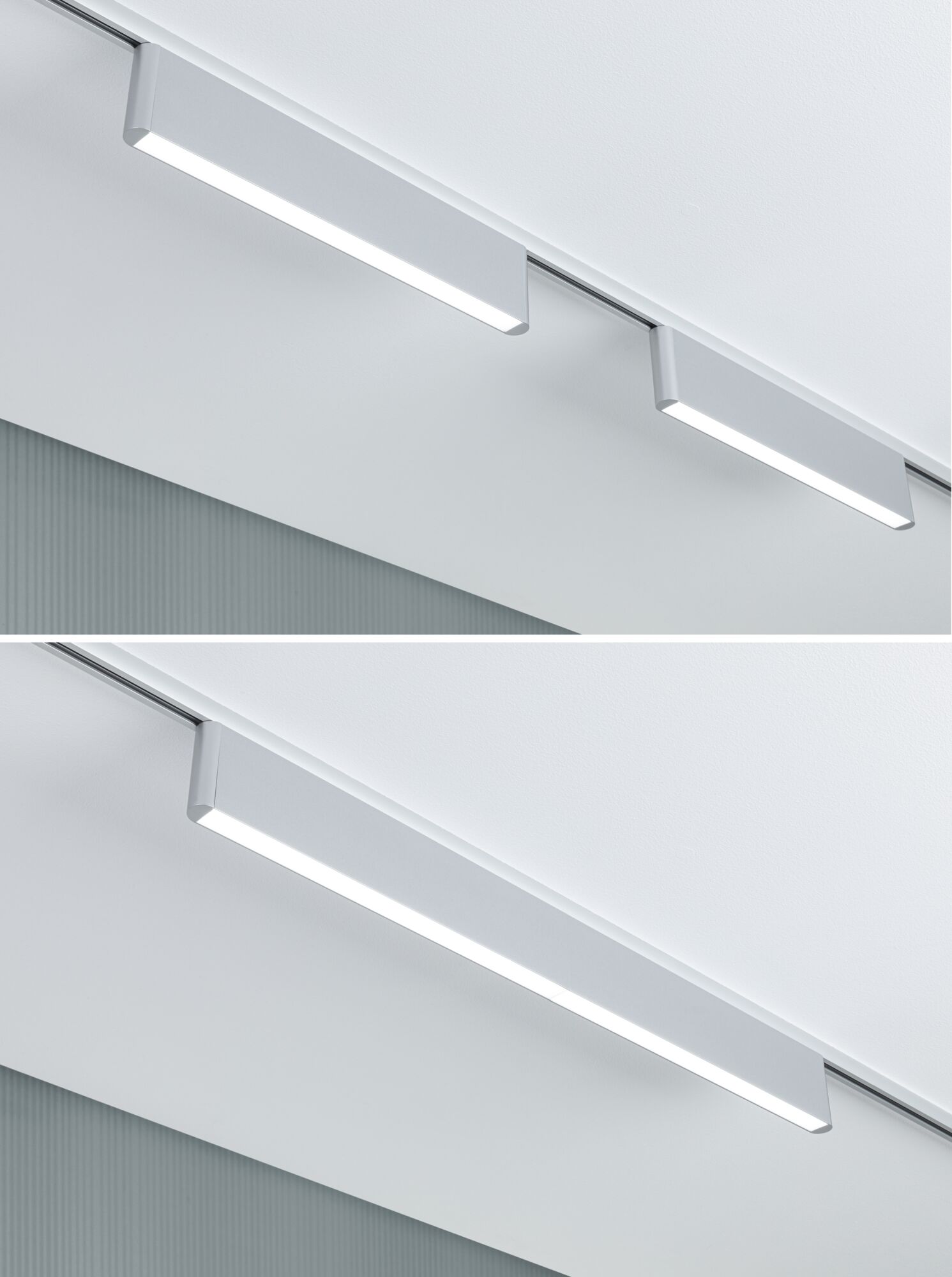 The URail light bar Ceris in Chrome matt, with a colour temperature of 3000K, creates a pleasant warm white lighting mood in living spaces, offices, hallways or other rooms. The wide-beam diffuser ensures glare-free and uniform light distribution. Consisting of high-quality aluminium and a simple design, it seamlessly blends into individual living concepts. Is the 32.2-cm length less than ideal? No problem – to achieve the perfect length for different rooms, any number of light bars can be connected in series. To do so, simply remove the end caps and connect the light bars using the enclosed connectors until the desired length is achieved. They can also be effortlessly connected to Zelos light bars. Another highlight is the three-step dimming function, which allows the brightness to be adjusted in three stages via a conventional light switch. For maximum convenience, the memory function stores the most recently selected setting until next activation.