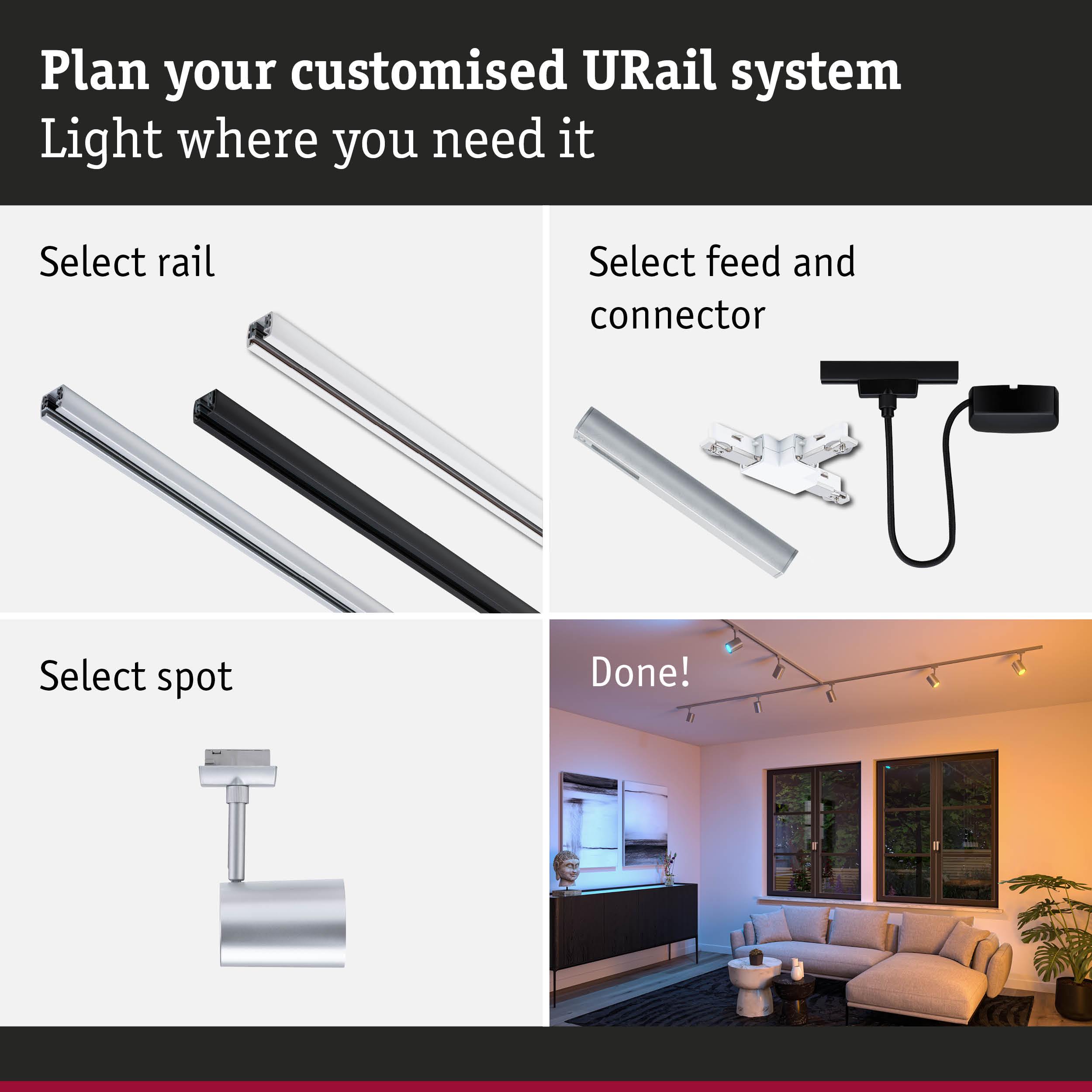 URail Rail spot Smart Home Zigbee 3.0 Luxe GU10 350lm 4,8W RGBW+ dimmable 230V Chrome matt